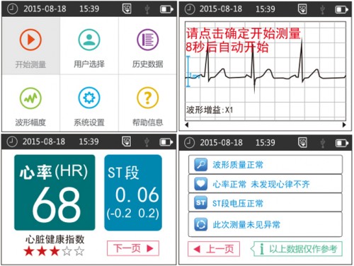 該款HC-201便攜式心電儀有(yǒu)手握與外接導聯線兩種測試方式,搭載一塊彩色顯示器(qì)。如(rú)果采用(yòng)手握式,用(yòng)戶隻需點擊“開(kāi)始測試”,便可(kě)在二十秒左右完成心電測試。用(yòng)戶可(kě)以在第一頁看到(dào)心率以及ST段的(de)監測結果,第二頁會(huì)顯示測試結果是否正常,如(rú)果顯示不正常會(huì)提示用(yòng)戶聯系醫生。